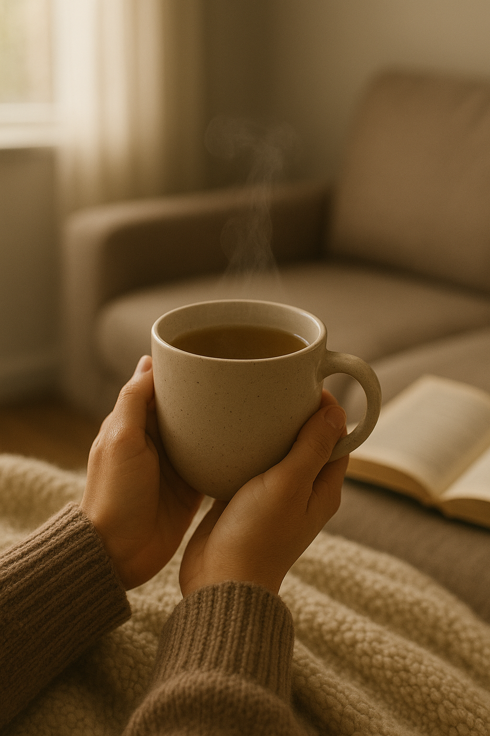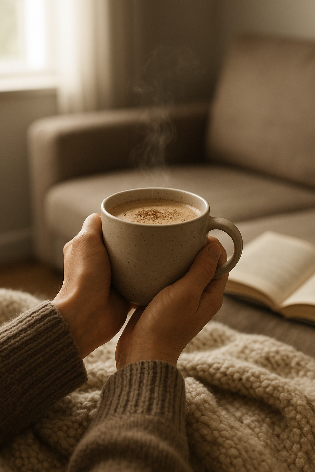Evoke a feeling of comfort and relaxation for home goods or self-care products. This prompt builds a warm, inviting scene that sells an aspirational, cozy lifestyle.