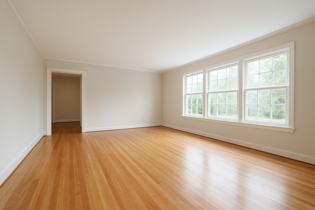 Perfect prompt for a vacant room. Highlights floors, windows, and proportions. Provides a clean canvas for virtual staging or buyer imagination.